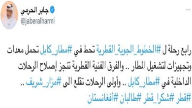 وصلت اليوم الأحد مطار كابل الدولي طائرة قطرية جديدة هي الخامسة التي تحمل مساعدات إغاثية عاجلة للشعب الأفغاني. وقال السفير القطري في كابل سعيد بن مبارك الخيارين إن هذا يأتي ضمن جسر جوي سيستمر خلال الأيام القادمة. وكانت طائرات قطرية أخرى وصلت خلال الأيام الماضية العاصمة الأفغانية حاملة معدات وتجهيزات…