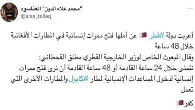 ذكر موقع الشرق أن وزير الخارجية البريطاني دومينيك راب قد أعرب عن امتنانه لدولة قطر على مساعدة بلاده في تسهيل الشؤون الدبلوماسية المتعلقة بأفغانستان من الدوحة، وأضاف في هذا الخصوص “أصدقاؤنا القطريون قاموا بعمل مدهش، سواء من خلال المساعدة في عمليات الإجلاء، أو كنقطة حوار مهمة مع اللجنة السياسية لطالبان”.…