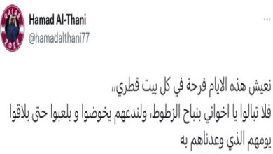 أكد سعادة الدكتور كريستيان تودور سفير الاتحاد الأوروبي لدى الدولة، أن بطولة كأس العالم FIFA قطر2022، التي تنطلق /الأحد/ المقبل، فرصة للعالم للتعرّف على ثقافة أهل قطر وكرم ضيافتهم. وأضاف سعادته في فيديو بثه على صفحته بموقع /تويتر/، أن البطولة التي تقام للمرة الأولى في دولة عربية ستثبت للعالم أن…