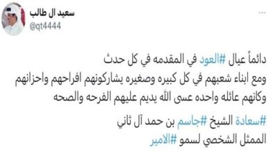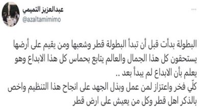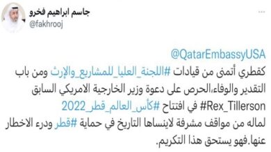 قال معالي الشيخ حمد بن جاسم بن جبر رئيس الوزراء ووزير الخارجية الأسبق : ونحن مقبلون على حدث مهم هذا الشهر إذ تستضيف بلادي مونديال كرة القدم، فإن المرء يتذكر بأسف ما قام به البعض من حملات مريرة (للتشكيك) في جاهزية قطر لهذه البطولة العالمية ومحاولة إحباطها تحت ذرائع عديدة.…