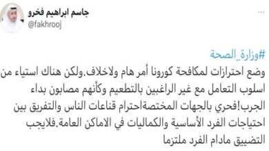 حثت وزارة التربية والتعليم والتعليم العالي، الكوادر التعليمية والإدارية بجميع المدارس الحكومية والخاصة، على ضرورة أخذ الجرعة الثالثة المعززة من أجل سلامة وصحة الجميع، والمضي قدما في مكافحة فيروس كورونا /كوفيد-19/، مؤكدة أنه تم توفير الجرعة الثالثة المعززة من اللقاح (فايزر، موديرنا) ، بدون موعد مسبق بكافة المراكز الصحية. وقالت…