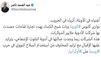 حذر السيد زيجفريد روسفوم رئيس اتحاد الصناعات الألمانية من وقف استيراد النفط والغاز من روسيا، وذلك على خلفية التصعيد العسكري الروسي في أوكرانيا .ونقلت وكالة الأنباء الألمانية عن روسفوم قوله : بأنه “يجب أن نفعل كل ما في وسعنا لتجنب هذا التصعيد، حتى لو كان ذلك صعبا للغاية”.وبحسب تقرير حديث…