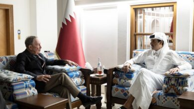 استقبل حضرة صاحب السمو الشيخ تميم بن حمد آل ثاني أمير البلاد المفدى، بمجلس الشيخ عبدالله بن جاسم بالديوان الأميري مساء اليوم، السيد مايكل بلومبيرغ مؤسس مجموعة بلومبيرغ الإعلامية ومؤسسة بلومبيرغ للأعمال الخيرية والوفد المرافق، وذلك للسلام على سموه بمناسبة زيارته البلاد.جرى خلال المقابلة مناقشة عدد من الموضوعات ذات الاهتمام…