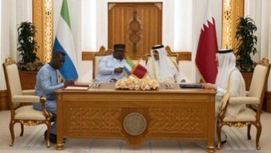 عقد حضرة صاحب السمو الشيخ تميم بن حمد آل ثاني أمير البلاد المفدى، وفخامة الرئيس الدكتور جوليوس مادا بيو رئيس جمهورية سيراليون، جلسة مباحثات رسمية بالديوان الأميري صباح اليوم. جرى خلال الجلسة استعراض العلاقات الثنائية بين البلدين، والسبل الكفيلة بدعمها وتطويرها في مختلف المجالات لاسيما الاستثمار والاقتصاد والسياحة والتَّعليم. إلى…