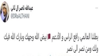 قال سعادة السيد سالم مبارك آل شافي، سفير دولة قطر لدى جمهورية مصر العربية، في كلمة مسجلة نشرها على حسابه في تويتر، بمناسبة ذكرى اليوم الوطني، يشرفني أن أنقل تهاني وتبريكات حضرة صاحب السمو الشيخ تميم بن حمد آل ثاني أمير البلاد المفدى لأخيه عبدالفتاح السيسي رئيس جمهورية مصر العربية،…