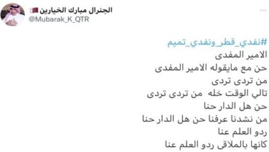 يعلن الديوان الأميري أن حضرة صاحب السمو الشيخ تميم بن حمد آل ثاني أمير البلاد المفدى “حفظه الله”، سيستقبل المهنئين بحلول عيد الأضحى المبارك في قصر الوجبة العامر صباح أول أيام العيد وفق الترتيب التالي: بعد صلاة العيد مباشرة وحتى الساعة 6:15 صباحا: أصحاب السعادة الشيوخ والوزراء ورئيس مجلس الشورى…