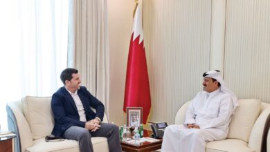التقَى سعادة السيد سلطان بن راشد الخاطر، وكيل وزارة التجارة والصناعة، سعادة السيد سكوت تايلور رئيس مجلس الأعمال القطري الأمريكي، الذي يزورُ البلاد حاليًا. حضر اللقاء سعادة الشَّيخة ميس بنت حمد بن محمد آل ثاني، المُدير العام في مكتب قطر لمجلس الأعمال القطري الأمريكي. وجرى خلال اللقاءِ مناقشةُ وتبادل الآراء…