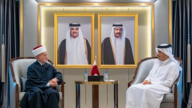 ن اجتمع سعادة الشيخ محمد بن عبدالرحمن آل ثاني نائب رئيس مجلس الوزراء وزير الخارجية، اليوم، مع سماحة الشيخ محمد أحمد محمد حسين مفتي القدس والديار الفلسطينية، الذي يزور البلاد حاليا. جرى، خلال الاجتماع، مناقشة تطورات عمل اللجنة القطرية الدائمة لدعم القدس، وأحدث المشاريع التي تتم من خلالها، وأكد سعادته…