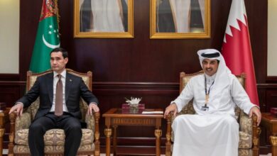 سمو الأمير المفدى يلتقي الرئيس التركمانستاني في استاد خليفة