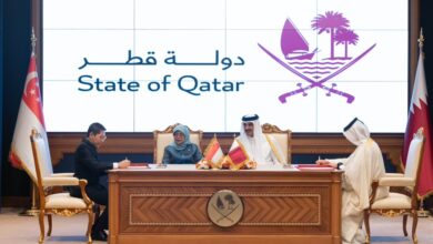 شهد حضرة صاحب السمو الشيخ تميم بن حمد آل ثاني أمير البلاد المفدى، وفخامة الرئيسة حليمة يعقوب رئيسة جمهورية سنغافورة، اليوم في الديوان الأميري، التوقيع على عدد من مذكرات التفاهم بين حكومتي البلدين.فقد شهد سموه وفخامة رئيسة سنغافورة التوقيع على مذكرة تفاهم في مجال الأمن الغذائي بين حكومتي البلدين، ومذكرة…