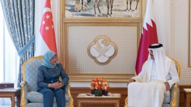 سمو الأمير يعقد جلسة مباحثات رسمية مع رئيسة سنغافورةعقد حضرة صاحب السمو الشيخ تميم بن حمد آل ثاني أمير البلاد المفدى، وفخامة الرئيسة حليمة يعقوب رئيسة جمهورية سنغافورة، جلسة مباحثات رسمية في الديوان الأميري صباح اليوم.وفي بداية الجلسة، رحب سمو الأمير المفدى بفخامة الرئيسة والوفد المرافق لها، متمنيا لهم طيب…