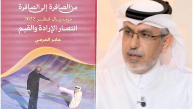 صدر حديثا عن دار الشرق كتاب جديد بعنوان ” من الصافرة إلى الصافرة .. مونديال قطر 2022.. انتصار الإرادة والقيم ” للكاتب الصحفي جابر الحرمي رئيس تحرير صحيفة الشرق.وقدم للكتاب سعادة الدكتور حمد بن عبد العزيز الكواري وزير الدولة ورئيس مكتبة قطر الوطنية، وذلك تحت عنوان /من ثمار مونديال قطر/،…
