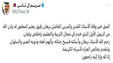 أعربت دولة قطر عن إدانتها واستنكارها الشديدين، لحادث الطعن الذي وقع في مدينة /آنسي/ في جبال الألب الفرنسية، وأدى إلى إصابة عدد من الأشخاص من بينهم أطفال.وجددت وزارة الخارجية، في بيان اليوم، موقف دولة قطر الثابت من رفض العنف والإرهاب والأعمال الإجرامية مهما كانت الدوافع والأسباب.وعبّرت الوزارة، عن تمنيات دولة…