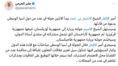 أكد سعادة الدكتور علي بن فطيس المري رئيس لجنة الشؤون الداخلية والخارجية بمجلس الشورى، على الأهمية الكبيرة التي تكتسبها جولة حضرة صاحب السمو الشيخ تميم بن حمد آل ثاني أمير البلاد المفدى (حفظه الله ورعاه) في عدد من الدول الصديقة في آسيا الوسطى بدعوة من قادتها، والتي تشمل جمهوريات أوزبكستان…