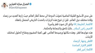 أكد معالي الشيخ محمد بن عبدالرحمن بن جاسم آل ثاني رئيس مجلس الوزراء وزير الخارجية، أن دولة قطر لن تتوانى عن بذل كافة الجهود والتنسيق والتعاون المستمر من أجل إنجاح أعمال الدورة الرابعة والأربعين للمجلس الأعلى لمجلس التعاون لدول الخليج العربية، وليحقق اجتماع المجلس أهدافه المنشودة بما يخدم شعوب ودول…