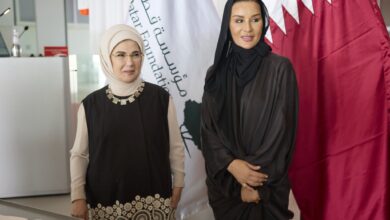 اجتمعت صاحبة السمو الشيخة موزا بنت ناصر، رئيس مجلس إدارة مؤسسة قطر للتربية والعلوم وتنمية المجتمع ومؤسسة التعليم فوق الجميع،اليوم، بسعادة السيدة أمينة أردوغان، حرم فخامة رئيس الجمهورية التركية الشقيقة.تم خلال الاجتماع مناقشة الأوضاع الراهنة في غزة والجهود المبذولة لتقديم الدعم والمساعدات الإنسانية للشعب الفلسطيني الشقيق.