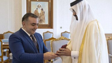 استقبل سمو الشيخ عبدالله بن حمد آل ثاني نائب الأمير، في مكتبه بالديوان الأميري، صباح اليوم، سعادة السيد رشاد اسماعيلوف سفير جمهورية أذربيجان، وذلك للسلام على سموه بمناسبة انتهاء فترة عمله في البلاد. وقد منح سمو نائب الأمير، سعادة السفير وسام الوجبة، تقديرا لدوره في المساهمة في تعزيز العلاقات الثنائية،…