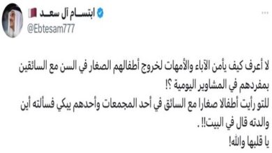 أمر سعادة الدكتور عيسى بن سعد الجفالي النعيمي النائب العام، بحبس بعض المغردين احتياطيا على ذمة التحقيق، وذلك على خلفية إساءتهم على منصة “تويتر” لإحدى المواطنات بعد تحقيقها إنجازا رياضيا.وذكرت النيابة العامة، في بيان، “بالإشارة إلى ما تم رصده على منصة التواصل الاجتماعي (تويتر) من قيام بعض المغردين بالإساءة إلى…