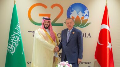 التقى سمو الأمير محمد بن سلمان بن عبدالعزيز آل سعود، ولي العهد رئيس مجلس الوزراء السعودي، اليوم، الرئيس التركي رجب طيب أردوغان، وذلك على هامش قمة قادة دول مجموعة العشرين، المنعقدة في العاصمة الهندية نيودلهي.وجرى خلال اللقاء بحث أوجه العلاقات بين البلدين وفرص تطويرها، بالإضافة إلى بحث عدد من المسائل…