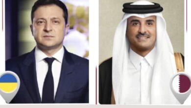 تلقى حضرة صاحب السمو الشيخ تميم بن حمد آل ثاني أمير البلاد المفدى، اتصالا هاتفيا اليوم، من فخامة الرئيس فولوديمير زيلينسكي رئيس أوكرانيا.جرى خلال الاتصال استعراض العلاقات الثنائية بين البلدين ومناقشة مستجدات الأوضاع في أوكرانيا.وفي هذا الصدد أعرب فخامة الرئيس الأوكراني عن شكره وتقديره لسمو الأمير المفدى على جهود دولة…