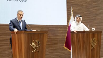 أكد معالي الشيخ محمد بن عبدالرحمن بن جاسم آل ثاني رئيس مجلس الوزراء وزير الخارجية موقف دولة قطر الثابت من إدانة كافة أشكال استهداف المدنيين، ورفضها التام للتعامل مع الأزمة في قطاع غزة بازدواجية معايير.وقال معاليه في مؤتمر صحفي عقده اليوم مع سعادة السيد هاكان فيدان وزير الخارجية التركي: “إننا…