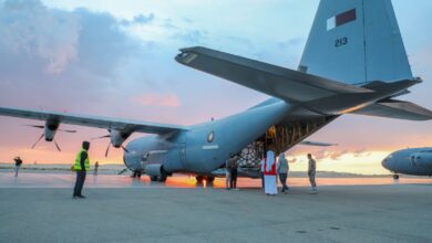 طائرة قطرية تصل إلى مدينة العريش المصرية تحمل مساعدات لدعم الأشقاء الفلسطينيين في غزة