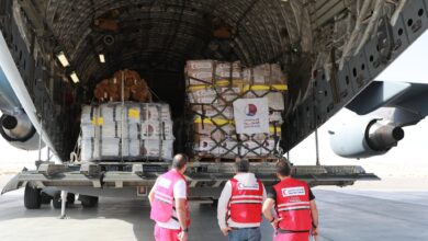 وصلت إلى مدينة العريش في جمهورية مصر العربية الشقيقة، اليوم، طائرة تابعة للقوات المسلحة القطرية، تحمل 11 طنا من المساعدات، تتضمن مواد غذائية مقدمة من الهلال الأحمر القطري، تمهيدا لنقلها إلى غزة، ليبلغ بذلك مجموع الطائرات 94 طائرة من المساعدات.وتأتي هذه المساعدات في إطار مساندة دولة قطر للشعب الفلسطيني الشقيق،…