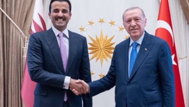 عقد حضرة صاحب السمو الشيخ تميم بن حمد آل ثاني أمير البلاد المفدى، وأخوه فخامة الرئيس رجب طيب أردوغان رئيس الجمهورية التركية الشقيقة، لقاء ثنائيا بالمجمع الرئاسي بالعاصمة أنقرة اليوم. وجرى، خلال اللقاء، بحث كافة أوجه التعاون والسبل الكفيلة بتنميتها وتطويرها في جميع المجالات، كما تناول اللقاء مجمل الأحداث والتطورات…
