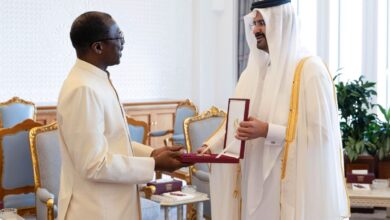 استقبل سمو الشيخ عبدالله بن حمد آل ثاني نائب الأمير، في مكتبه بالديوان الأميري صباح اليوم، سعادة السيد فوداي مولانق سفير جمهورية غامبيا، وذلك للسلام على سموه بمناسبة انتهاء فترة عمله في البلاد. ومنح سمو نائب الأمير، سفير غامبيا وسام الوجبة تقديراً لدوره في دعم وتعزيز العلاقات الثنائية، متمنياً له…