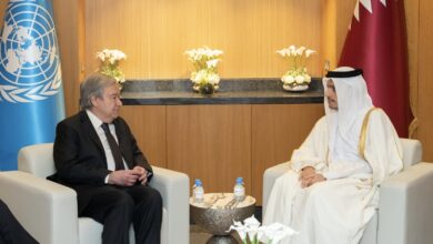 تلقى معالي الشيخ محمد بن عبدالرحمن بن جاسم آل ثاني رئيس مجلس الوزراء وزير الخارجية، اليوم، اتصالا هاتفيا من سعادة السيد أنطونيو غوتيريش الأمين العام للأمم المتحدة. جرى خلال الاتصال، استعراض تطورات الأوضاع في قطاع غزة والأراضي الفلسطينية المحتلة، على ضوء الاتفاق على بنود وآليات تنفيذ المرحلة الأولى من اتفاق…