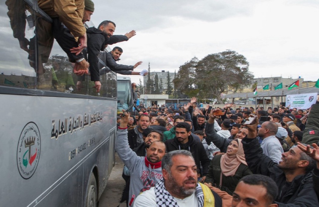ووصلت حافلة تقل أسرى فلسطينيين ضمن الدفعة السادسة لصفقة التبادل، إلى بلدة “بيتونيا” غربي “رام الله” في الضفة الغربية، فيما سيصل لاحقا، الأسرى الفلسطينيون من سكان قطاع غزة، أو الذين سيتم إبعادهم إليه وفقا لبنود الاتفاق.