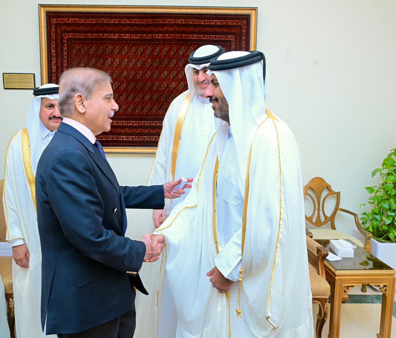 استقبل دولة السيد محمد شهباز شريف رئيس وزراء جمهورية باكستان الإسلامية اليوم، سعادة الشيخ فيصل بن ثاني بن فيصل آل ثاني وزير التجارة والصناعة خلال زيارته لجمهورية باكستان الإسلامية لترأس أعمال الدورة السادسة للجنة الوزارية القطرية – الباكستانية المشتركة للتعاون الاقتصادي والتجاري والفني بين وزارة التجارة والصناعة بدولة قطر ووزارة التجارة الباكستانية.