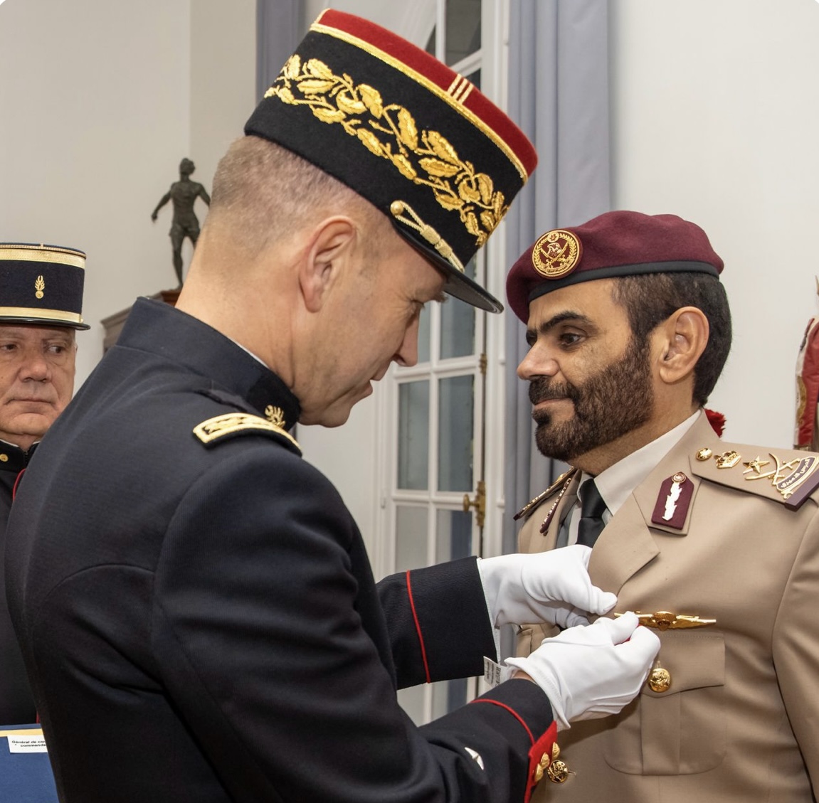 وتقديرا لدوره في تعزيز العلاقات العسكرية بين البلدين الصديقين وخلال مراسم رسمية، قام قائد الحرس الجمهوري الفرنسي بتقليد الفريق الركن هزاع بن خليل الشهواني قائد الحرس الأميري وسام جوقة الشرف برتبة “ضابط”، وذلك بمقر الحرس الجمهوري الفرنسي في العاصمة الفرنسية باريس.