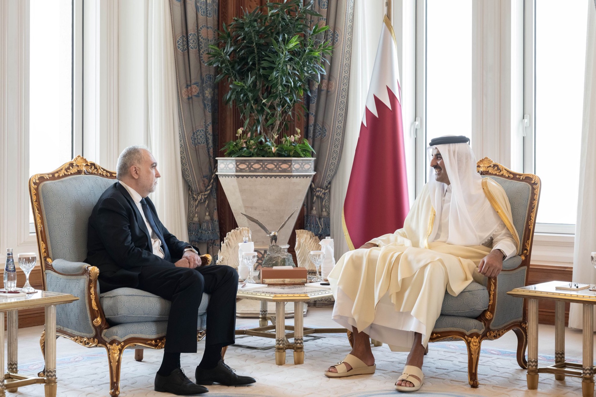 استقبل حضرة صاحب السمو الشيخ تميم بن حمد آل ثاني أمير البلاد المفدى، صباح اليوم في مكتبه بالديوان الأميري، سعادة السيد بلامين ستانكوف ديليف سفير جمهورية بلغاريا، وذلك للسلام على سموه بمناسبة انتهاء فترة عمله في البلاد.