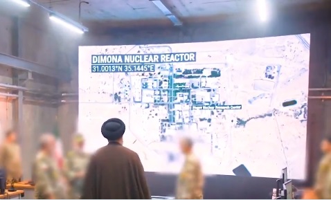 وتظهر في خلفية المشهد خريطة لمفاعل ديمونة الإسرائيلي مثبتة على الجدار الرئيسي داخل غرفة العمليات، في إشارة توحي بالاستعداد لاستهداف المفاعل، وهو ما عزز من انتشار الفيديو وتداوُله بوصفه مؤشرا على تصعيد عسكري محتمَل.