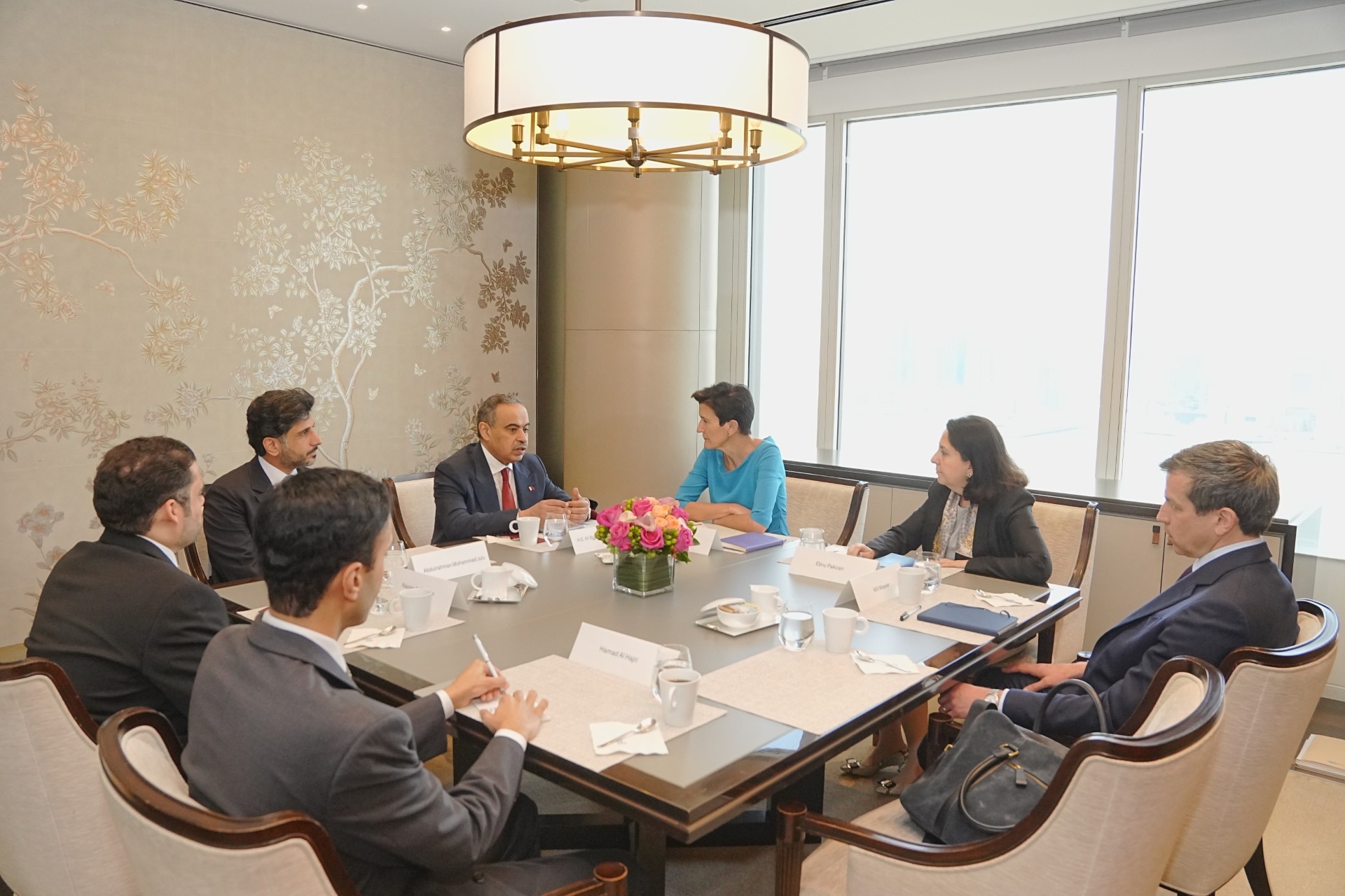 فقد اجتمع سعادته مع السيد لاري فينك، رئيس مجلس الإدارة والرئيس التنفيذي لشركة بلاك روك، والسيد جيمي ديمون، الرئيس التنفيذي لبنك جيه بي مورجان تشيس، والسيدة جين فريزر، الرئيسة التنفيذية لمجموعة سيتي جروب كل على حدة.