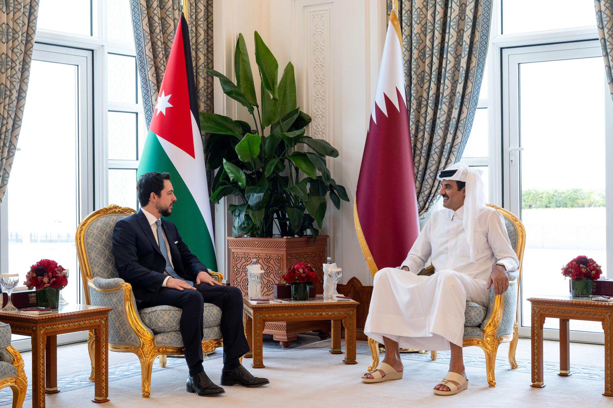 من جانبه نقل سمو ولي العهد الأردني إلى سمو الأمير المفدى تحيات أخيه جلالة الملك عبدالله الثاني ابن الحسين، ملك المملكة الأردنية الهاشمية الشقيقة، وتمنياته لسموه بموفور الصحة والسعادة، وللشعب القطري دوام التقدم والازدهار.