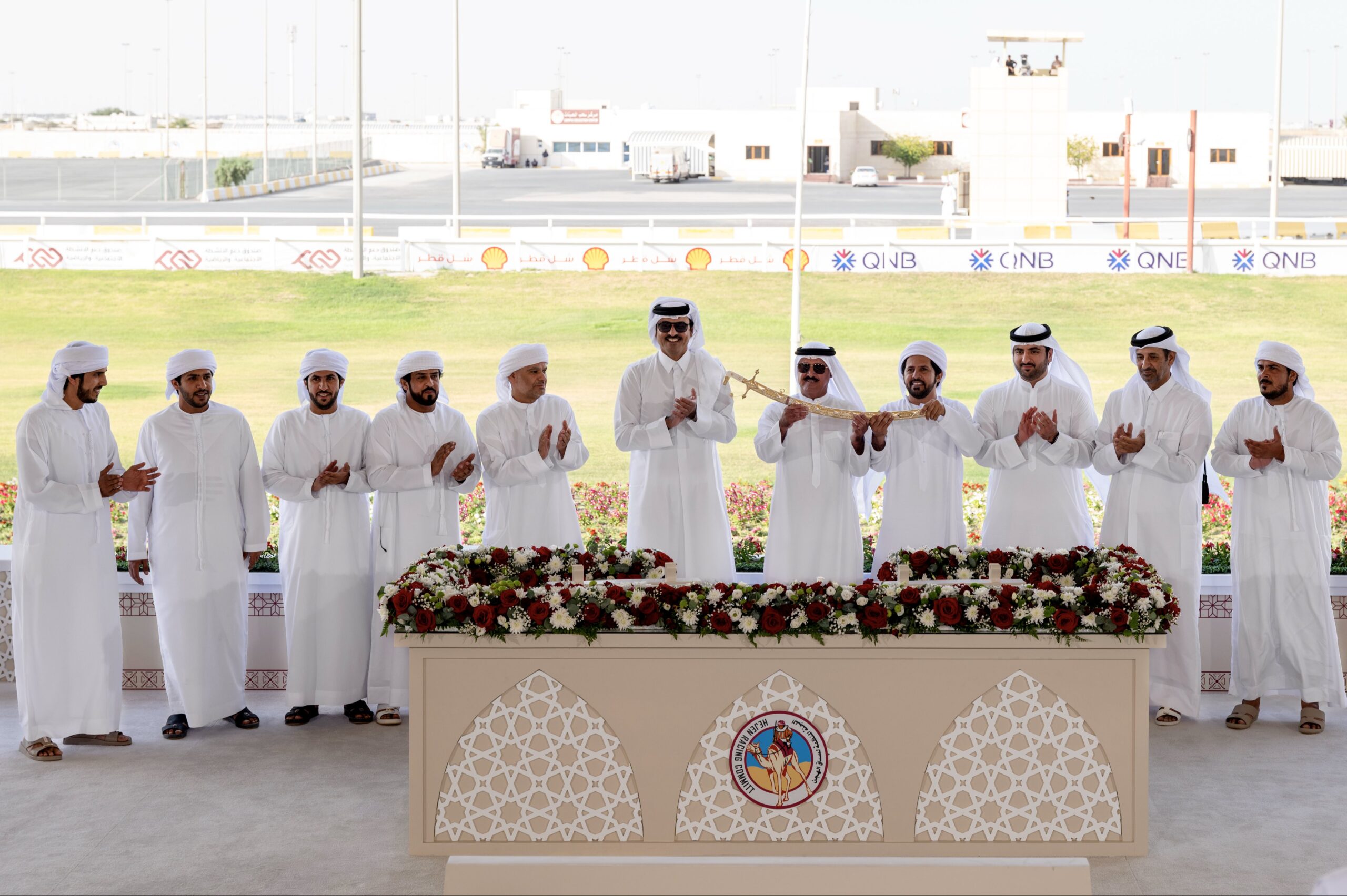 شهد حضرة صاحب السمو الشيخ تميم بن حمد آل ثاني أمير البلاد المفدى، الأشواط الختامية في المهرجان السنوي لسباق الهجن العربية الأصيلة على سيف سموه للموسم (2025-2026)، التي أقيمت بمضمار الشيحانية، عصر اليوم.