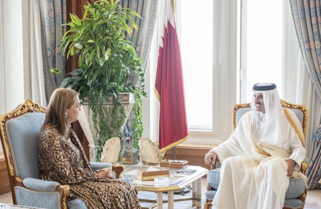 سمو أمير قطر الشيخ تميم بن حمد آل ثاني ، في مكتبه بالديوان الأميري سعادة