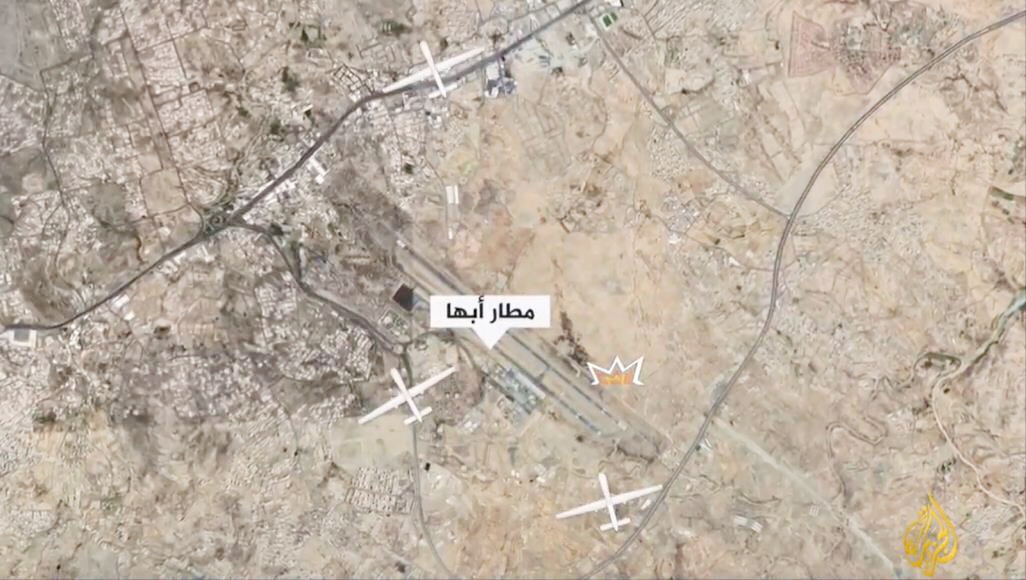 المراقبة في مطار أبها الدولي (جنوب غربي السعودية)، ويبعد مئتي كيلومتر عن الحدود