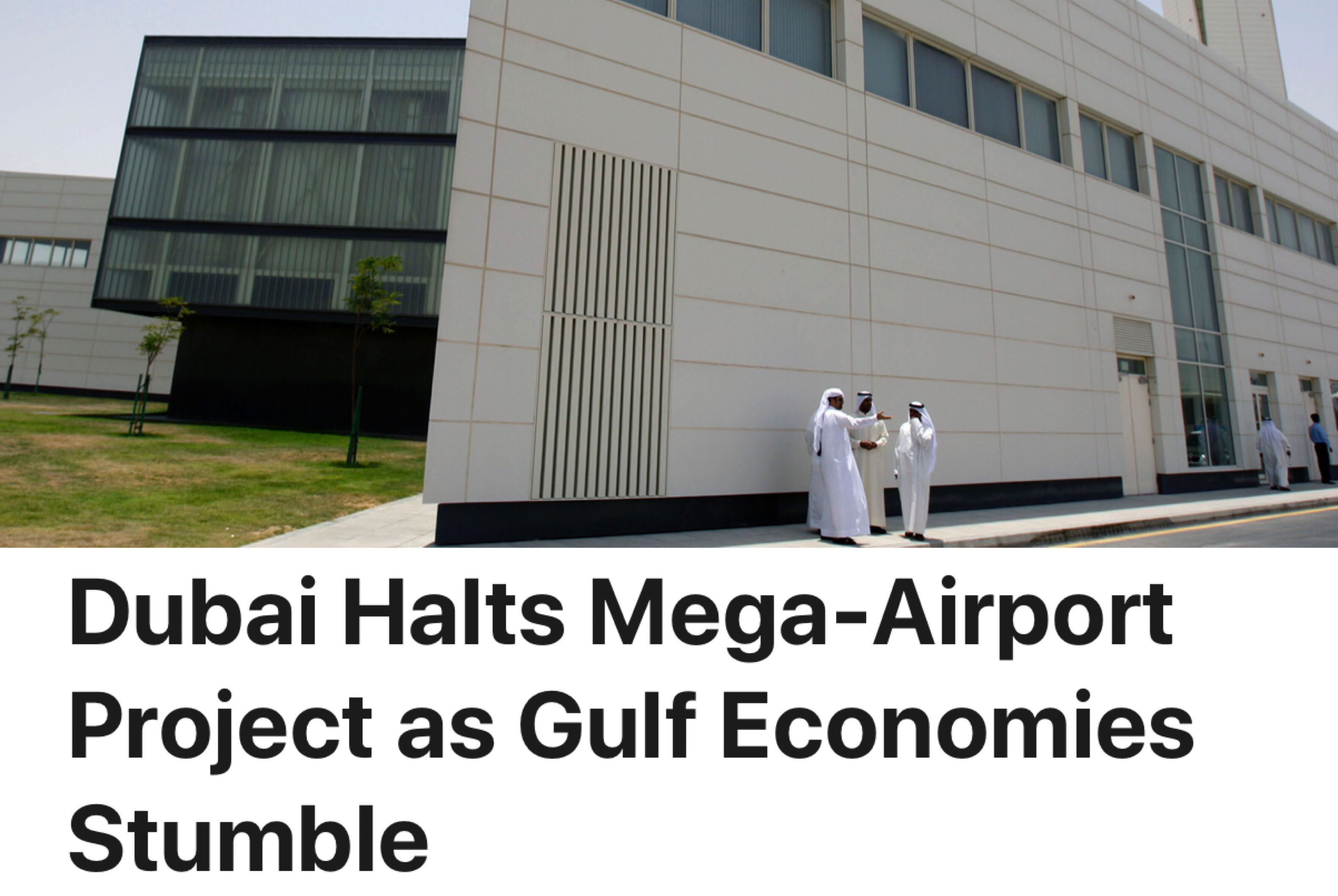 كشفت مصادر مطلعة أن الإمارات أوقفت العمل في بناء مطار “آل مكتوم” الدولي في إمارة دبي؛ جراء تراجع أداء اقتصادها.