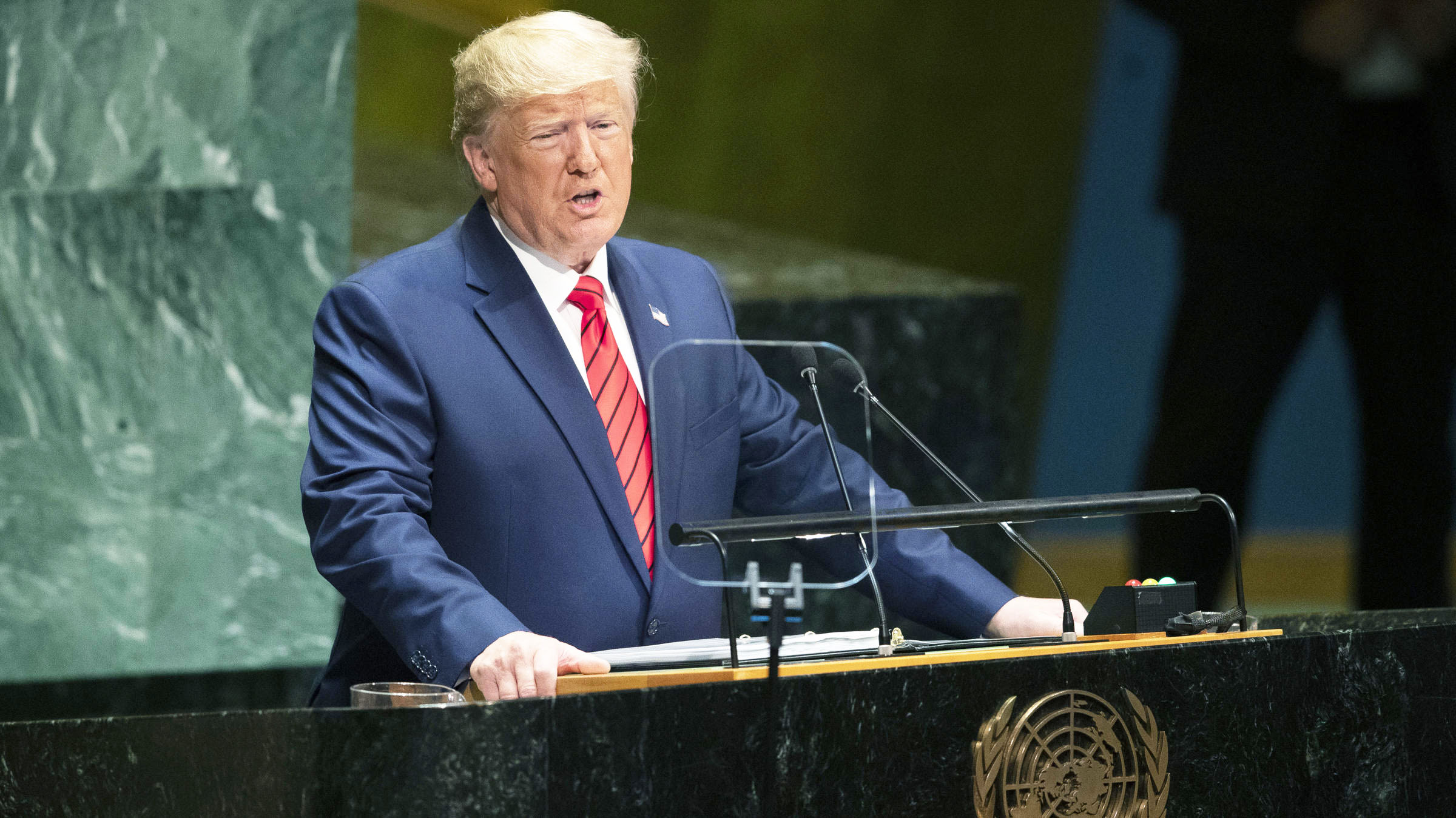 واتهم ترامب السلطات الإيرانية بتصعيد أعمالها العدوانية في محاولة منها لتحقيق إلغاء العقوبات، معتبرا أن إيران هي من يقف وراء الهجوم على شركة “أرامكو” السعودية يوم 14 سبتمبر بينما تحاول إلقاء اللوم على الأخرين عن أعمالها. ودعا الرئيس الأمريكي كل دول العالم إلى اتخاذ إجراءات لردع الحكومة الإيرانية ومنع حصولها على أسلحة نووية، مضيفا: “من الضروري ألا تقوم أي دولة مسؤولة بتمويل تعطش إيران للدماء“.