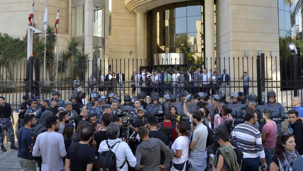اعتصم محتجون اليوم أمام وزارة العدل اللبنانية وأغلقوا مداخلها للمطالبة بمحاسبة من يصفونهم بالفاسدين واستعادة الأموال المنهوبة، وأغلقت المصارف والمدارس أبوابها اليوم في ظل الدعوات لإضراب عام اليوم للمطالبة بالإسراع بتشكيل حكومة جديدة.وحاول متظاهرون في العاصمة بيروت منع موظفين من الدخول إلى مؤسسات عامة تلبية لإضراب عام دعوا إليه ضمن حراكهم الشعبي، واحتجاجا على مماطلة السلطات التي لم تحرك ساكنا منذ استقالة رئيس الحكومة سعد الحريري قبل أسبوعين.