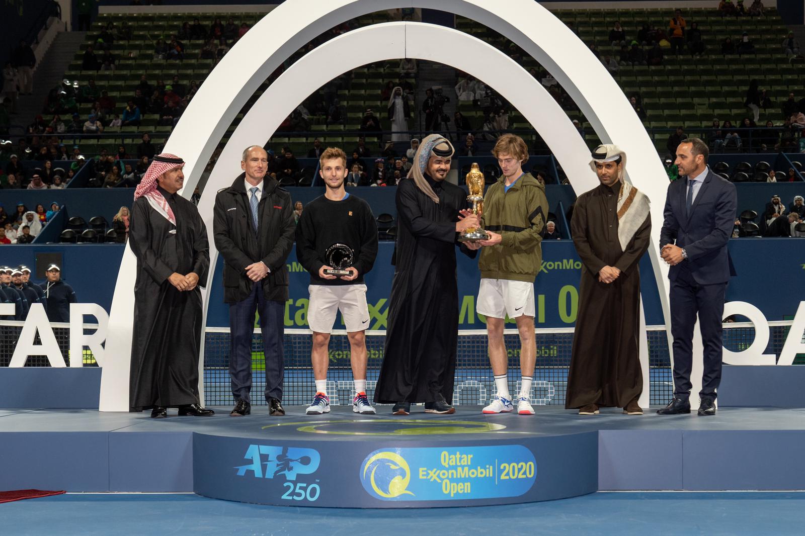 وأعرب الروسي أندريه روبليف عن سعادته الغامرة بإحراز لقب بطولة قطر اكسون موبيل للمرة الأولى في تاريخه، مشيرا إلى أنه بذل جهدا كبيرا من أجل تحقيق في جميع الأدوار وواجه صعوبات كبيرة.ويشار إلى أن جوائز بطولة قطر اكسون موبيل تبلغ قرابة مليون ونصف المليون دولار وتحديدا 1,359,180 دولار حيث يحصل الفائز باللقب الفردي على 227.930 ألف دولار و250 نقطة، بينما يحصل الوصيف على 71.30 ألف دولار و90 نقطة، فيما ينال المتأهل للدور ربع النهائي 40.425 ألف دولار و45 نقطة، بينما يحصل المتأهل إلى دور الـ 16 على 23.190 ألف دولار، والمشارك في الدور الرئيسي على 13.560 ألف دولار، والمشارك في الدور الأول من التصفيات على 3.445 ألف دولار والمتأهل للدور الثاني من التصفيات على 6.625 ألف دولار.