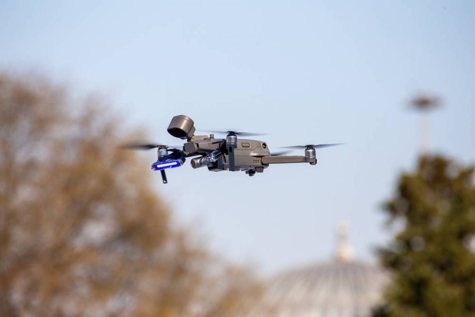 تحلق طائرة مسيرة يذكّر صوتها بأزيز الدبابير على مقربة من الاشخاص الذين يخالفون تدابير الحد من انتشار فيروس كورونا في بلدة تريفيولو القريبة من بيرغامو بشمال إيطاليا. وتوجه الطائرة الصغيرة الحجم تعليمات مسجلة وتأمر «انتباه! أنت في مكان محظور، اخرج على الفور».