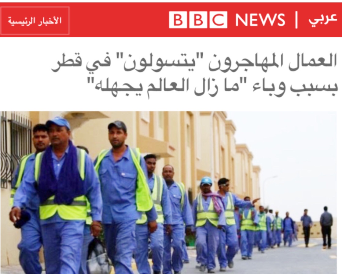 ثم ينقل الموقع عن الغارديان زعمها ان العمال المهاجرين “يتسولون في قطر للحصول على الطعام مع ارتفاع حالات الإصابة بمرض كوفيد 19″.