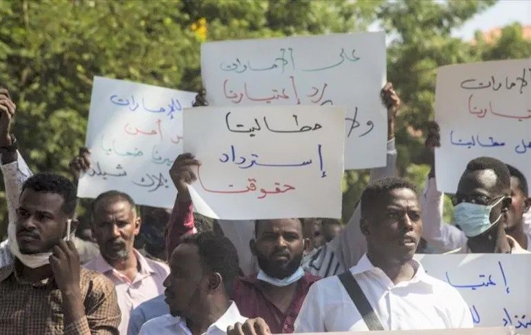 أعاد احتجاج لمئات الشباب السودانيين الثلاثاء الماضي أمام سفارة الإمارات في الخرطوم ملف شركة “بلاك شيلد” (Black Shield) إلى الواجهة، وهي التي وظفت أكثر من 270 سودانيا للعمل في الحراسة الخاصة في منشآت في دولة الإمارات، ولكن الشركة دربتهم عسكريا بغرض نقلهم للقتال في اليمن وليبيا. وطالب المحتجون الشركة المسجلة في الإمارات بالاعتذار للشعب السوداني عما قالوا إنها خديعة تعرضوا لها من قبلها بإرسالهم للقتال في ليبيا.