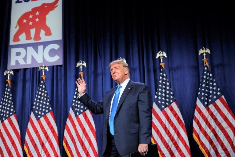 سمى الحزب الجمهوري رسميا اليوم الاثنين الرئيس دونالد ترامب مرشحا لولاية ثانية في انتخابات الرئاسة الأميركية يوم 3 نوفمبر/تشرين الثاني المقبل. ومن دون مفاجآت، سمى نحو 330 مندوبا اجتمعوا في تشارلوت بولاية كارولينا الشمالية الرئيس ترامب مرشحا لهم في اليوم الأول من مؤتمر الجمهوريين. وأعلن المندوبون الذين يمثلون 50 ولاية أميركية، دعمهم للرئيس واحدا تلو الآخر، بدءا بولاية ألاباما بحسب التسلسل الأبجدي.
