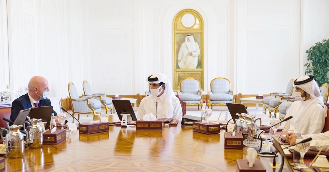 ترأس حضرة صاحب السمو الشيخ تميم بن حمد آل ثاني، أمير البلاد المفدى، الاجتماع الثالث لمجلس إدارة اللجنة العليا للمشاريع والإرث لعام 2020، والذي عقد بالديوان الأميري صباح اليوم، بحضور سعادة السيد جياني إنفانتينو رئيس الاتحاد الدولي لكرة القدم “FIFA”.