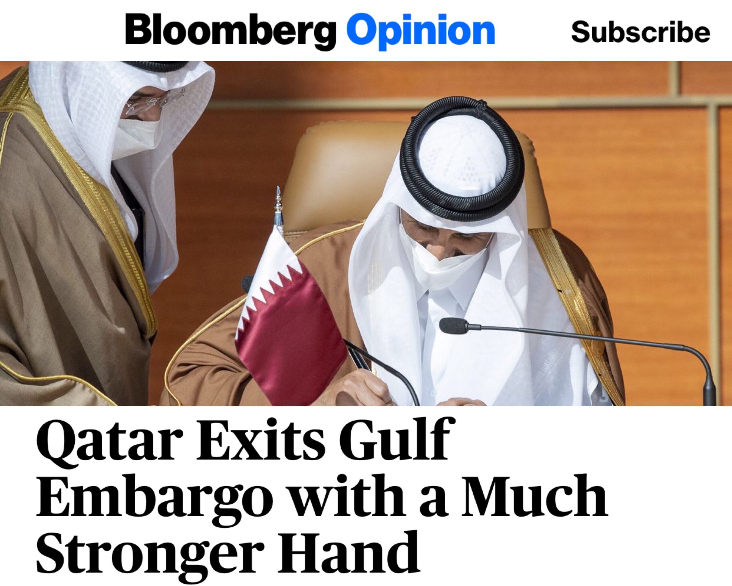 “انتهى الحظر بشروط سمو أمير قطر ، مع احتفاظ الدوحة بالقدر نفسه من السيطرة على سياساتها ، في الداخل والخارج ، كما كان قبل بدء الحصار ويمكن لسمو الشيخ تميم بن حمد أن يؤكد أن بلده أصبح أقوى خلال السنوات القليلة الماضية.